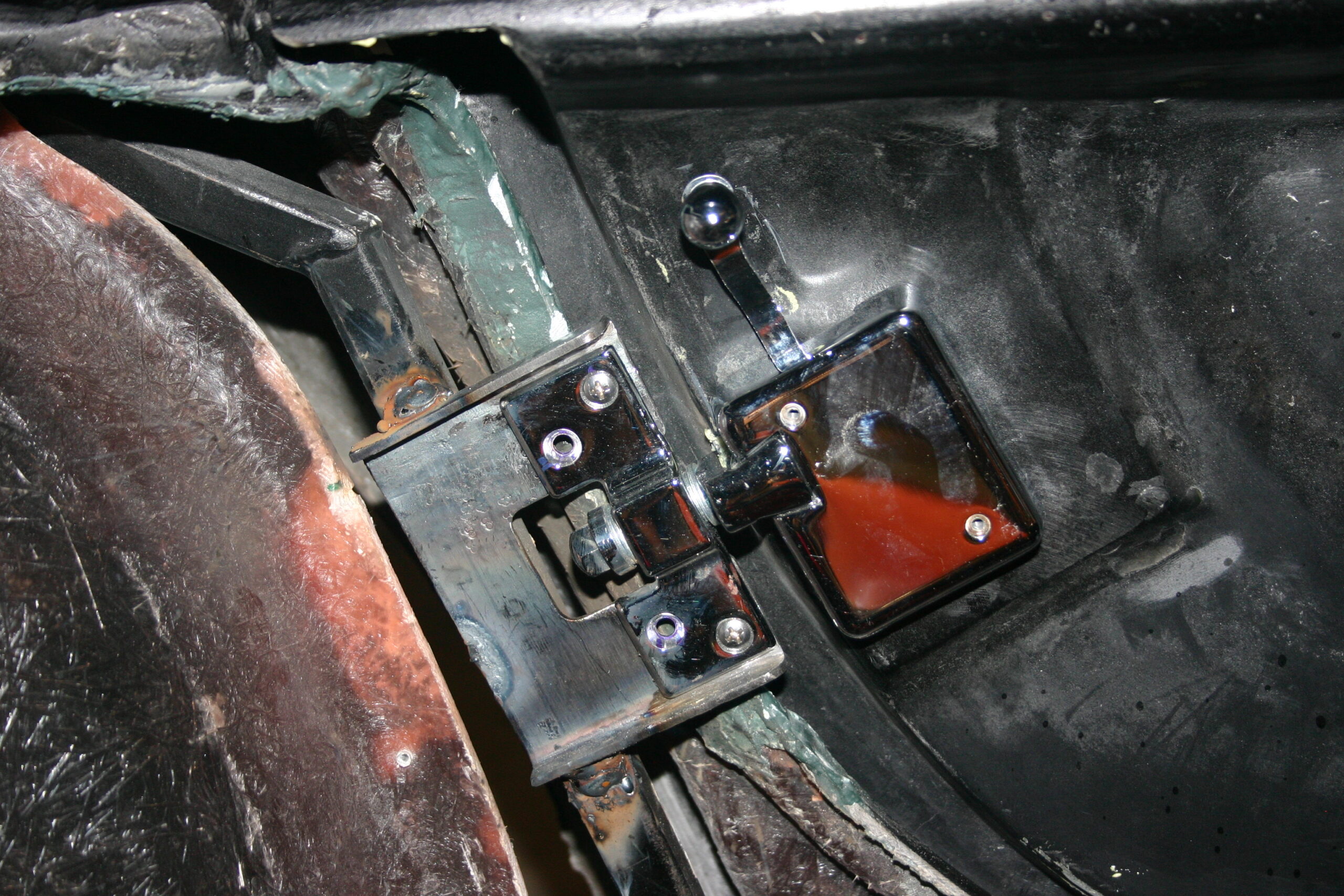 The door latches that come with the Hurricane kit are duplicates of what was used on the original cars. But that’s where the replication ends. The latch handles/boxes are put on upside down, if you follow the instructions. And the male latch part mounting – it’s just plain sloppy. (Sorry, Mike and Rich, you could have done better here).