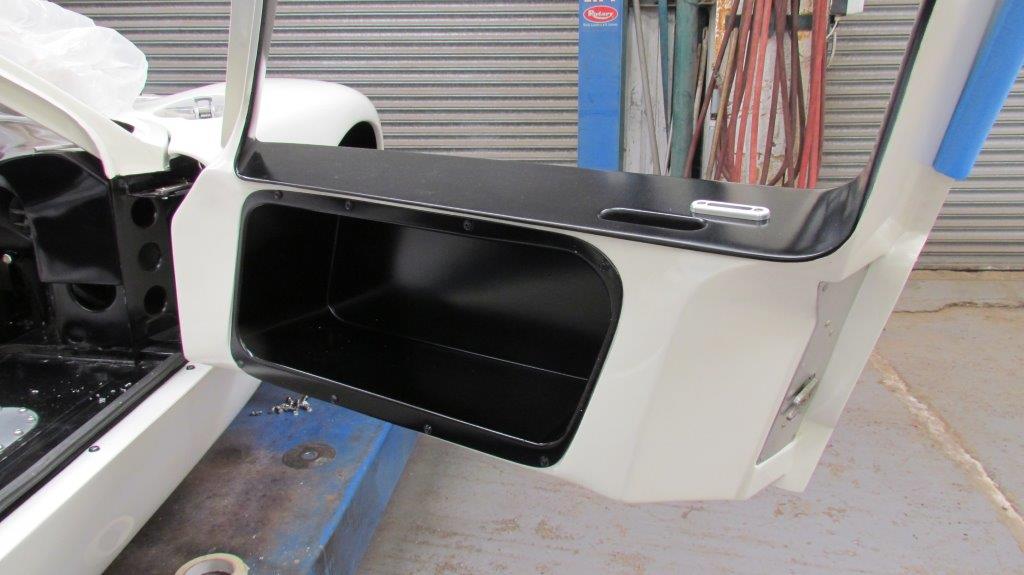 On my first build, HM1078, the car came with a Lokar #EHB-7000F, flat-mounted eBrake handle. The originals angled up and there was definitely room for improvement.
