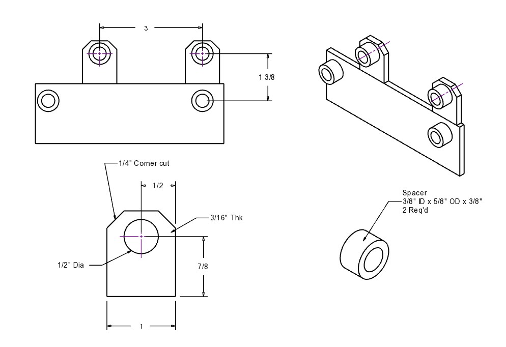 The mod requires welding a couple short tabs to mount the new lever at a slightly higher point. This drawing shows the extra pieces needed and positioning.
