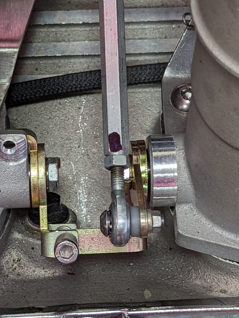 It’s difficult to convey how critical the linkage is. The black mark is a reference point used during final tuning. Rotating that point 1/4 turn in either direction created a change in lambda of 10%. The final linkage was tuned in 1/6 turns (one hex flat). And it made a perceivable difference.